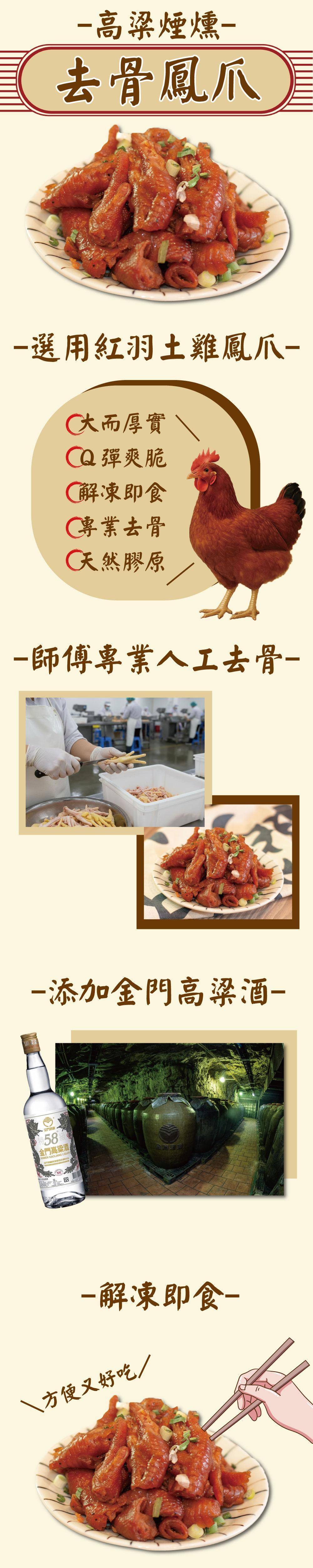 主商品:高粱酒香煙燻去骨鳳爪120g(固形物:90g)*7袋